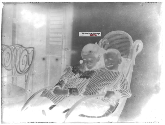 Plaque verre photo ancienne négatif noir et blanc 9x12 cm bébé enfant vintage