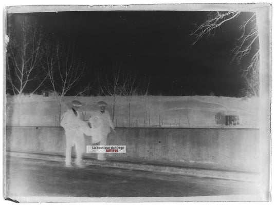 Plaque verre photo ancienne négatif noir et blanc 9x12 cm couple France vintage