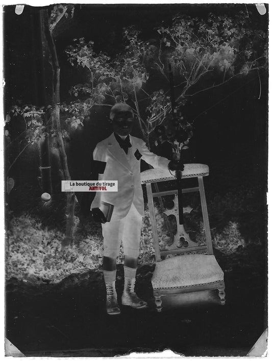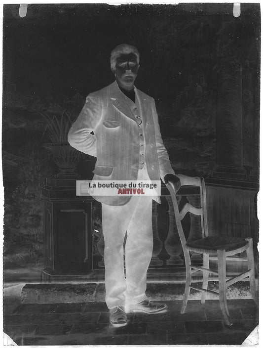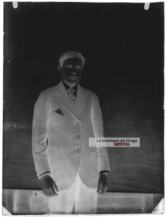 Plaque verre photo ancienne négatif noir et blanc 9x12 cm homme glass plate