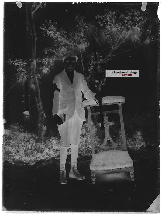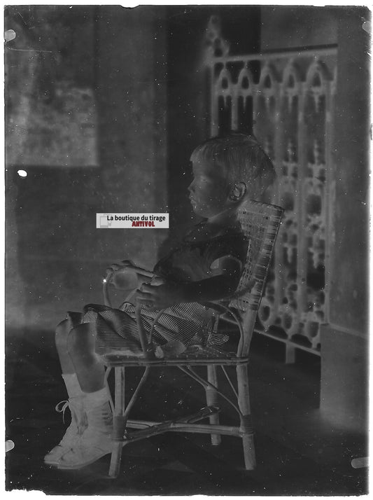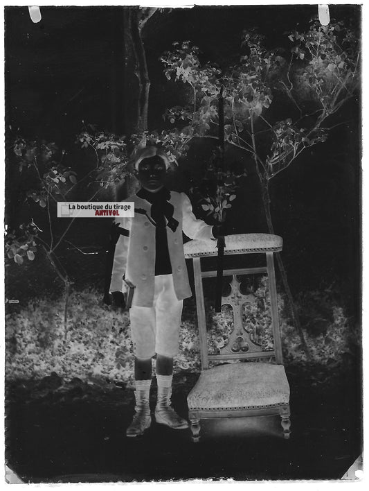 Plaque verre photo ancienne négatif noir et blanc 9x12 cm jeune garçon vintage