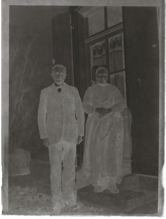 Plaque verre photo ancienne noir et blanc négatif 9x12 cm couple maison glass