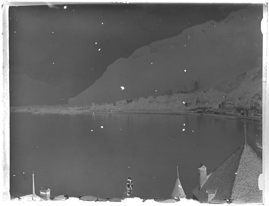 Plaque verre photo ancienne noir et blanc négatif 9x12 cm lac Chillon Suisse