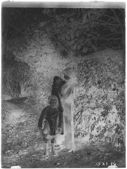 Plaque verre photo ancienne noir et blanc négatif 9x12 cm enfants jardin vintage