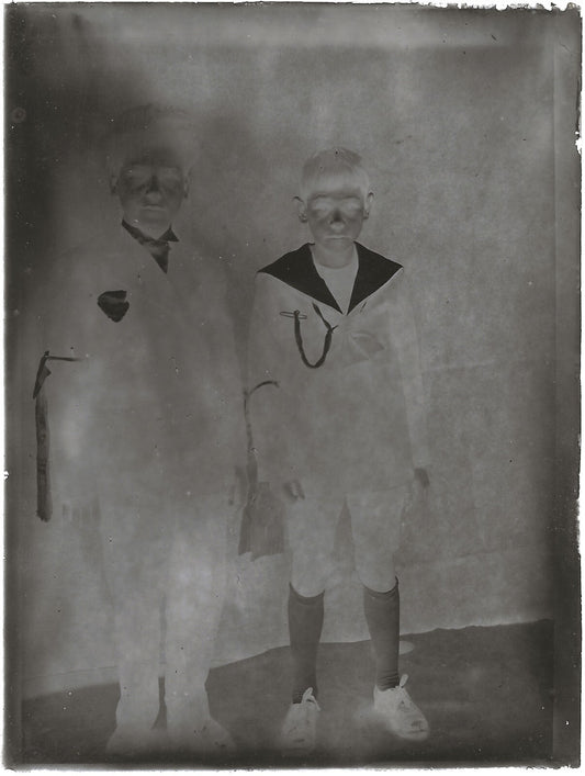 Plaque verre photo ancienne noir et blanc négatif 9x12 cm garçons glass plate