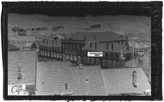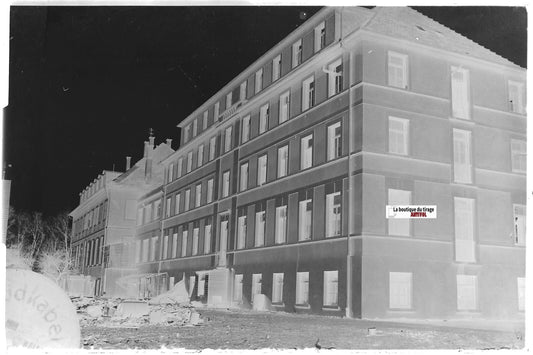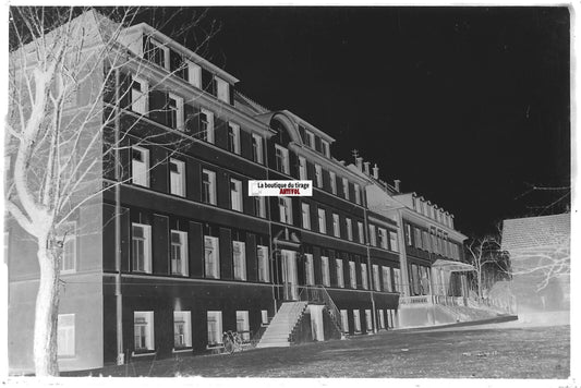 Plaque verre photo ancienne, négatif noir & blanc 9x14 cm Neufchâteau, collège