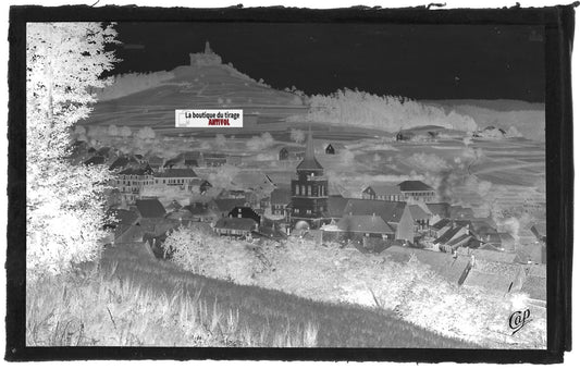 Plaque verre photo ancienne, négatif noir & blanc 9x14 cm, Dabo village France