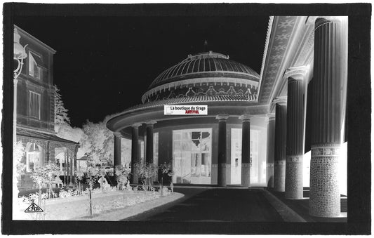 Plaque verre photo ancienne, négatif noir & blanc 9x14 cm, Contrexéville, casino