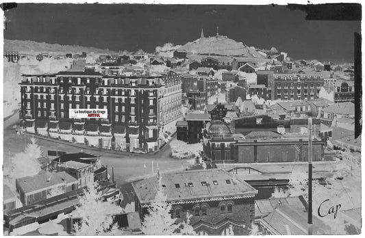 Plaque verre photo ancienne, négatif noir & blanc 9x14 cm, Châtel-Guyon centre
