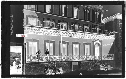 Plaque verre photo ancienne, négatif noir & blanc 9x14 cm, Dax, hôtel Graciet