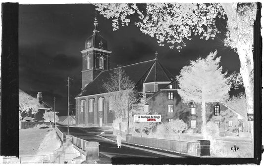 Plaque verre photo ancienne, négatif noir & blanc 9x14 cm, église de Mouthe