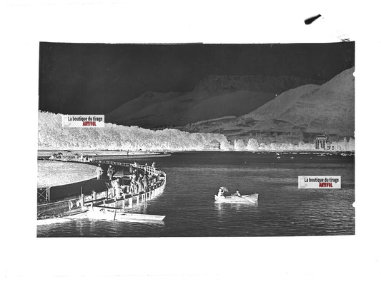 Plaque verre photo négatif noir et blanc 13x18 cm Annecy lac eau bateau + CPA