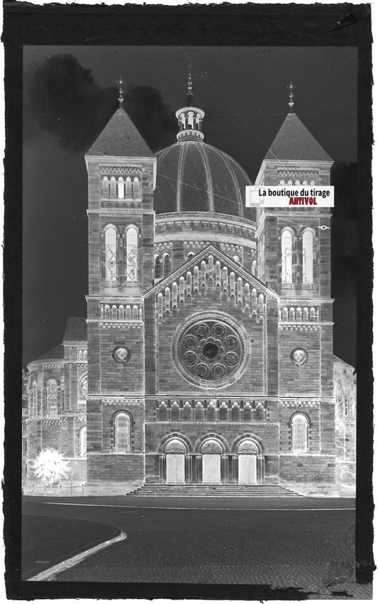 Plaque verre photo négatif noir & blanc 9x14 cm, Strasbourg, Saint-Pierre église
