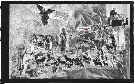 Plaque verre photo négatif noir & blanc 9x14 cm, Strasbourg, église, crèche