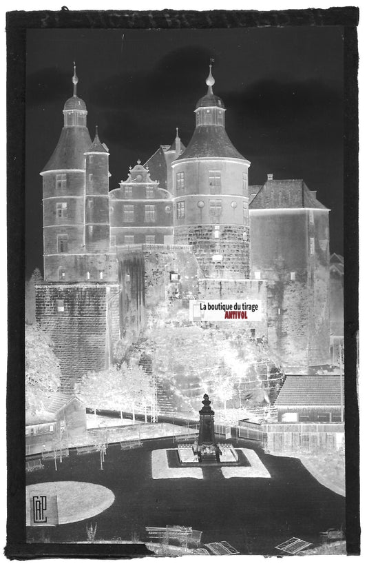 Plaque verre photo vintage négatif noir & blanc 9x14 cm Montbéliard, château