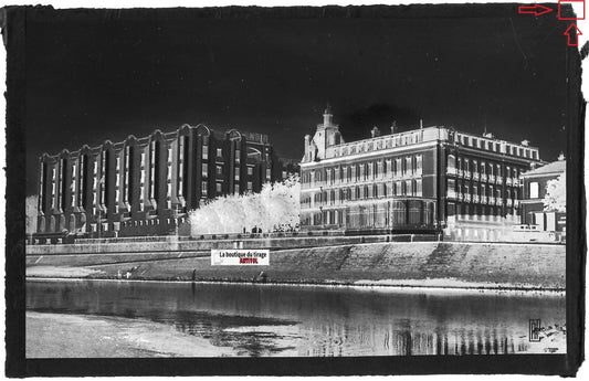 Plaque verre photo, négatif noir & blanc 9x14 cm, Dax, Splendid, thermes, Adour