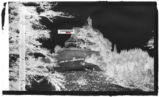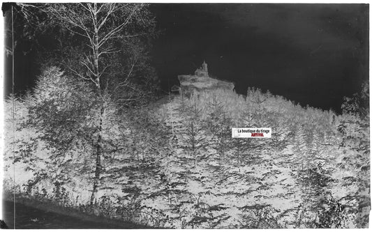 Plaque verre photo, négatif noir & blanc 9x14 cm, Dabo, Chapelle, bois et forêt