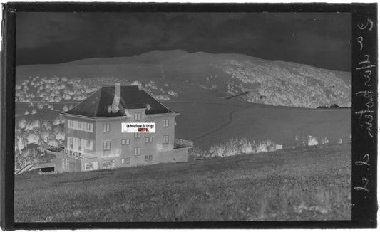 Plaque verre photo, négatif noir & blanc 9x14 cm, Le Markstein, Hôtel Bellevue