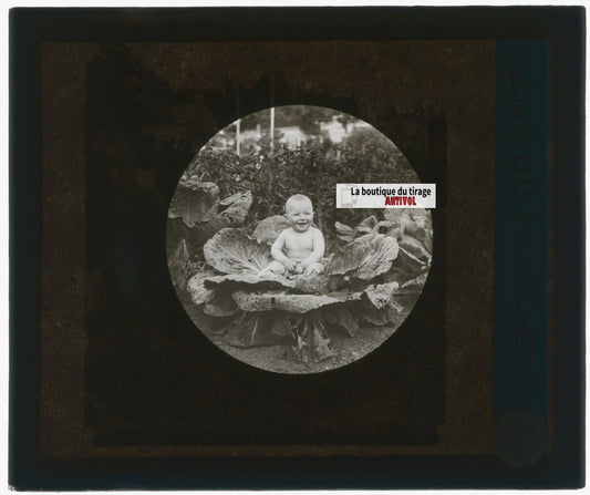 Portrait bébé, photo ancienne plaque verre, noir & blanc, positif 8,5x10 cm