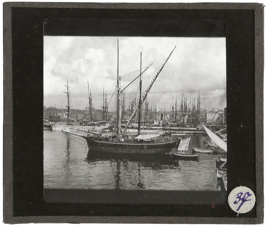 Port de Marseille, Pharo, bateaux, photo plaque de verre, positif 8,5x10 cm