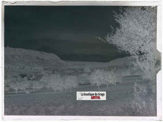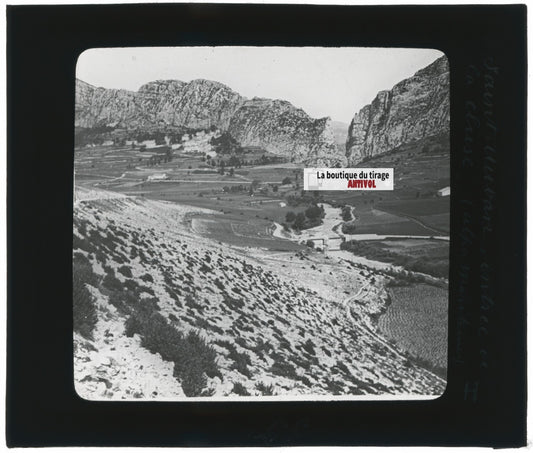 Saint-Auban, paysage, falaise, photo ancienne plaque de verre, positif 8,5x10 cm