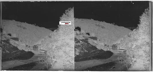 Sauret-Besserve Viaduc, Plaque verre photo, stéréo négatif noir & blanc 6x13 cm