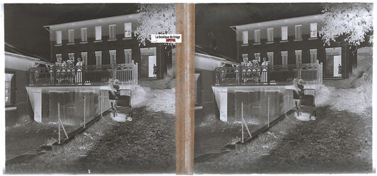 Scène de vie, Plaque verre photo stéréo, négatif noir & blanc 4,5x10,7 cm