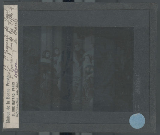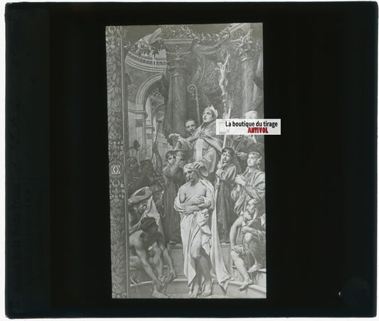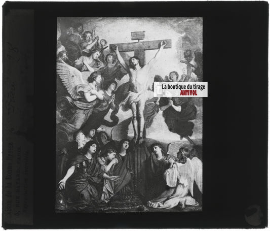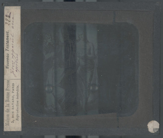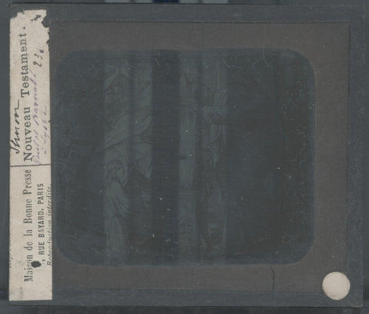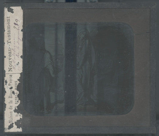 Scène religieuse, dessin, plaque de verre, noir & blanc, positif 8,5x10 cm