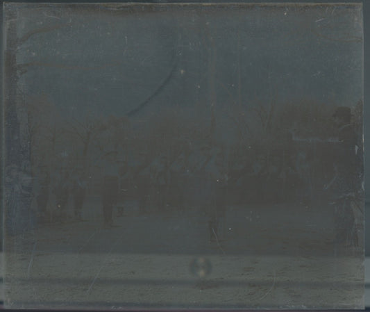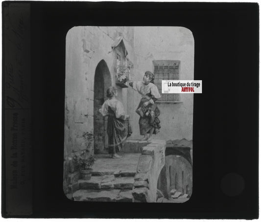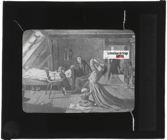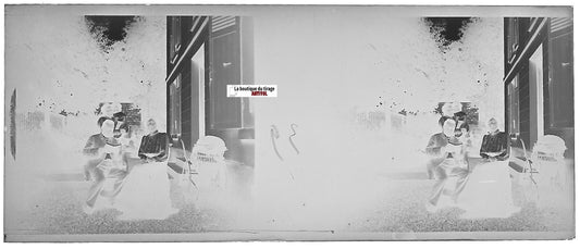 Scène vie, Plaque verre photo stéréoscopique, négatif noir & blanc 4,5x10,7 cm