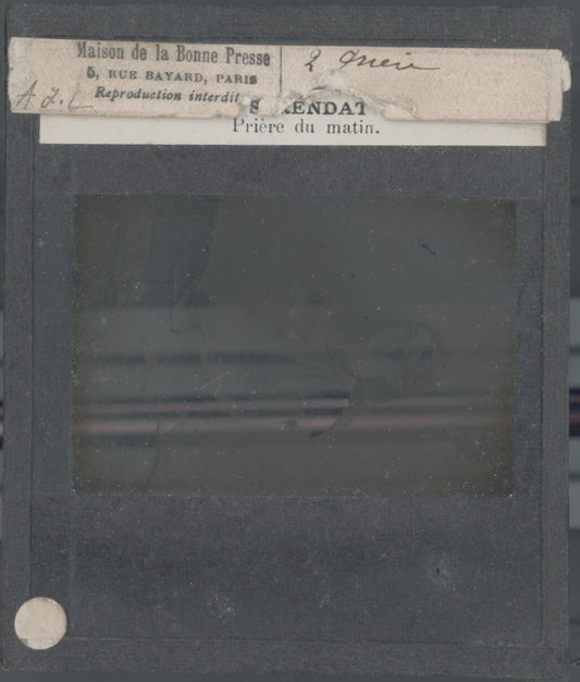 Scène religieuse, religion, dessin peinture, plaque verre, positif 8,5x10 cm