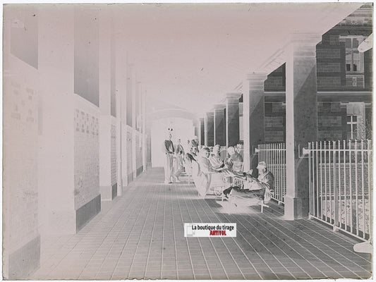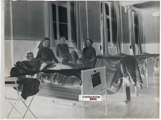 Soldats, hôpital militaire, plaque verre, photo ancienne, négatif N&B 9x12 cm