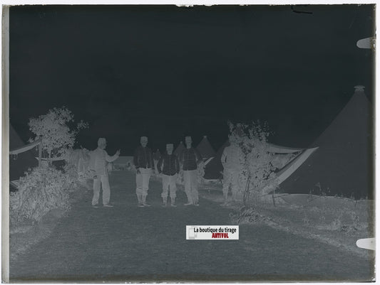 Soldats, Camp militaire, plaque verre, photo ancienne, négatif N&B 9x12 cm