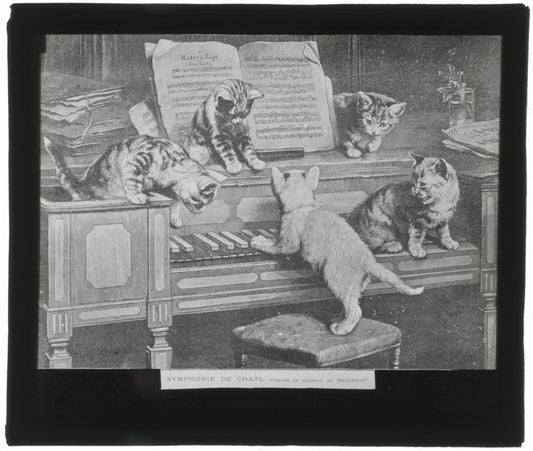 Symphonie de chats, Reichert, peinture, photo plaque verre, positif 8,5x10 cm