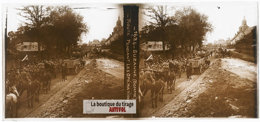Suzanne, Somme, guerre WW1, plaque verre photo ancienne stéréo 6x13 cm