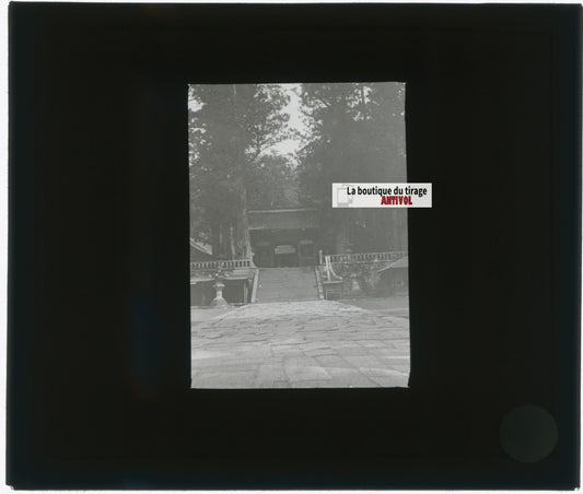 Temples de Nikkō, Japon, photo plaque verre, noir & blanc, positif 8,5x10 cm