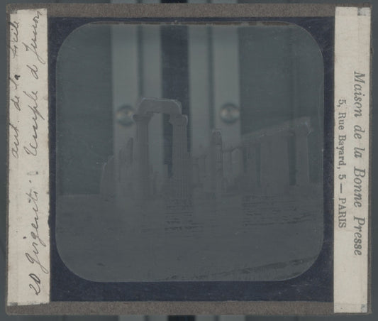 Temple de Junon, Agrigente, photo plaque verre, noir & blanc, positif 8,5x10 cm