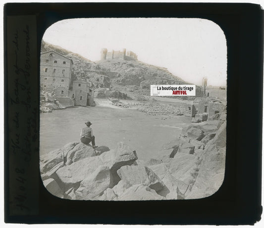 Tolède, Espagne, photo ancienne plaque verre, noir & blanc, positif 8,5x10 cm