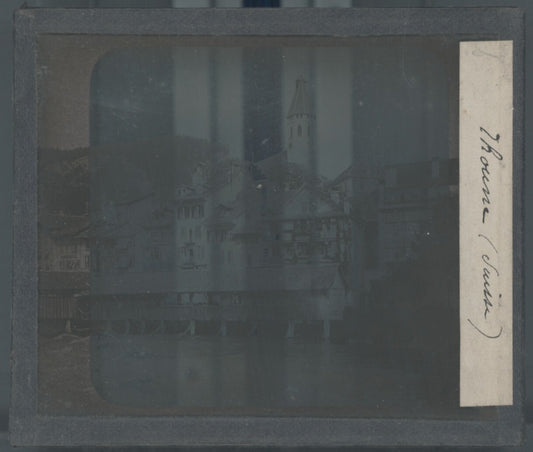 Thoune et le pont de l’Aar, photo plaque verre, noir & blanc, positif 8,5x10 cm