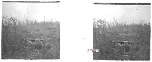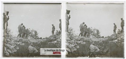Tranchées, Poilus, Plaque verre stéréo, positif ancien noir & blanc 4,5x10,7 cm