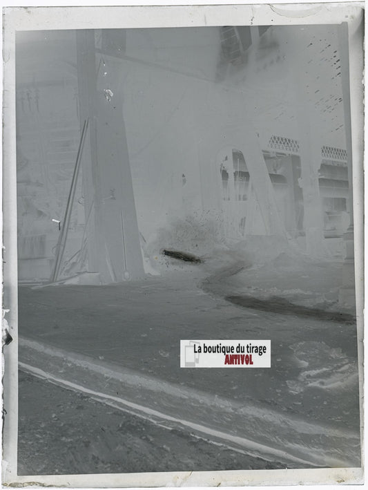 Usine, industrie, Plaque verre photo ancienne, négatif noir & blanc 6x9 cm