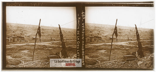 Verdun, Ravin de Bezonvaux, WW1, plaque verre photo ancienne stéréo 6x13 cm