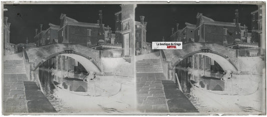 Venise, gondolier, Italie, stéréo photo ancienne plaque verre, négatif 8x18 cm