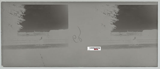 Vélo, château, Plaque verre photo stéréo, négatif noir & blanc 4,5x10,7 cm