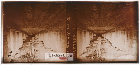 Verdun, tranchée des Baïonnettes, plaque verre photo ancienne stéréo 6x13 cm