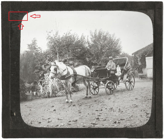 Vertou, cheval calèche, chien, photo ancienne plaque de verre, positif 8,5x10 cm