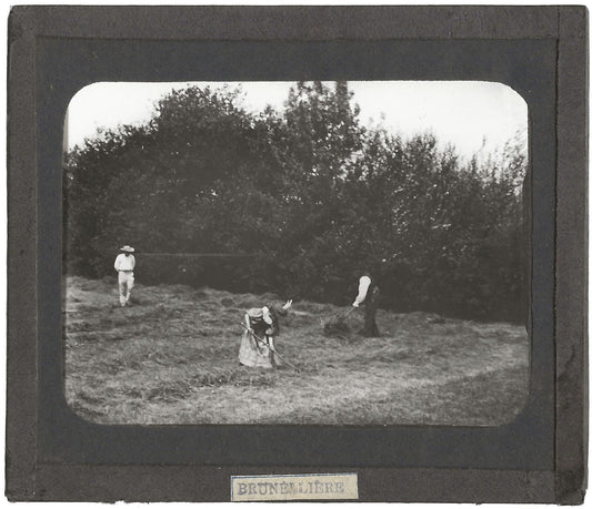 Vertou, ouvriers agricoles, photo ancienne plaque de verre, positif 8,5x10 cm