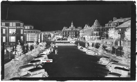 Vichy, place de La Poste, Plaque verre photo, négatif noir & blanc 6x11 cm