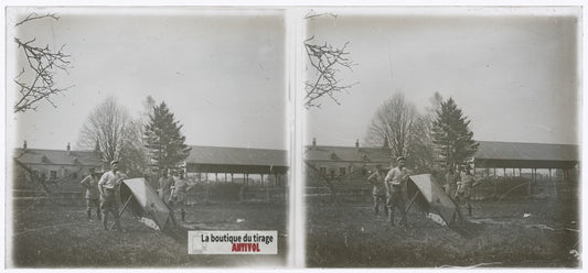 Soldats, Camp militaire, plaque verre, photo ancienne, négatif N&B 9x12 cm
