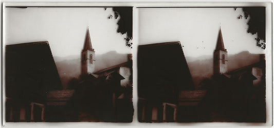 Village de montagne, Plaque verre photo stéréo, positif noir & blanc 6x13 cm