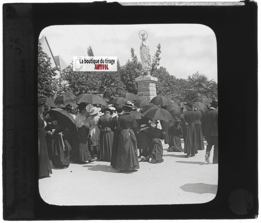 Vierge Couronnée, Lourdes, photo plaque verre, noir et blanc, positif 8,5x10 cm
