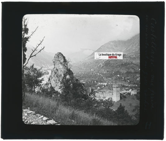 Village Castellane, Provence, photo ancienne plaque de verre, positif 8,5x10 cm